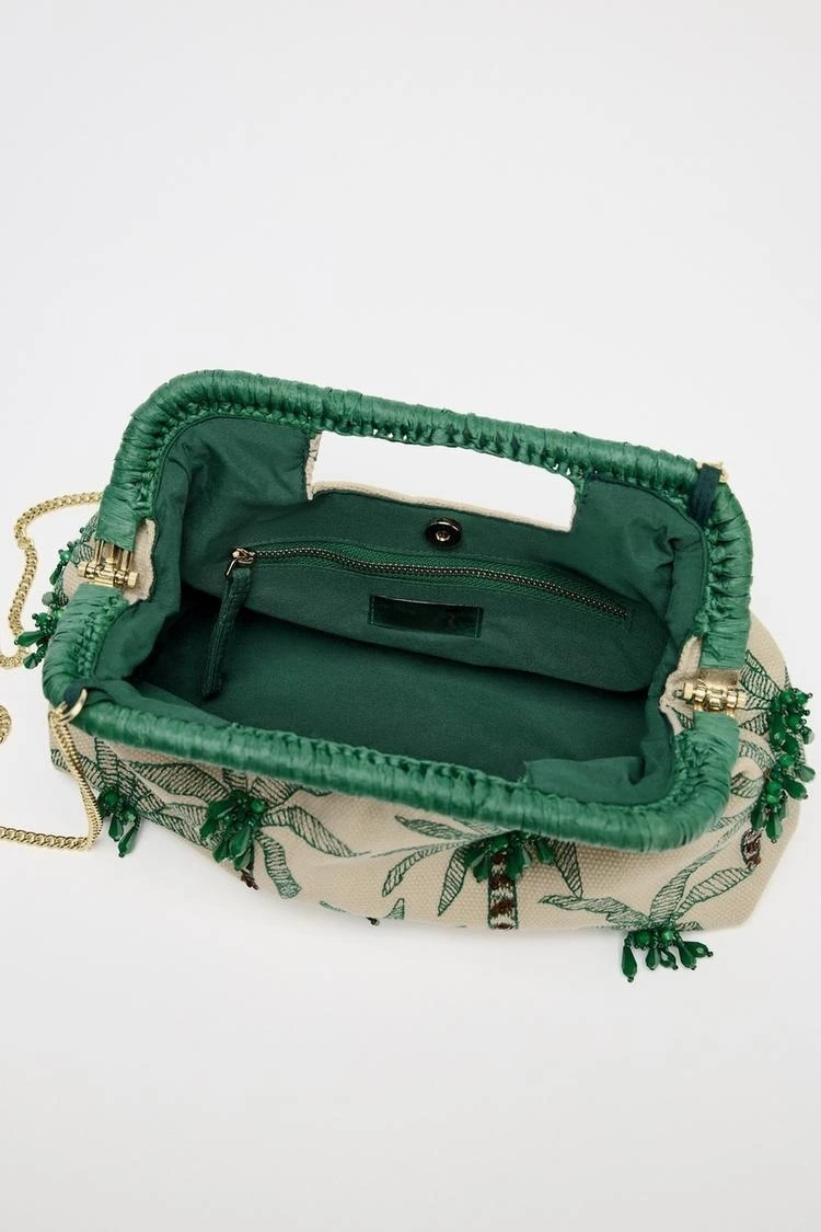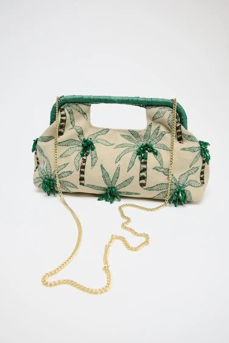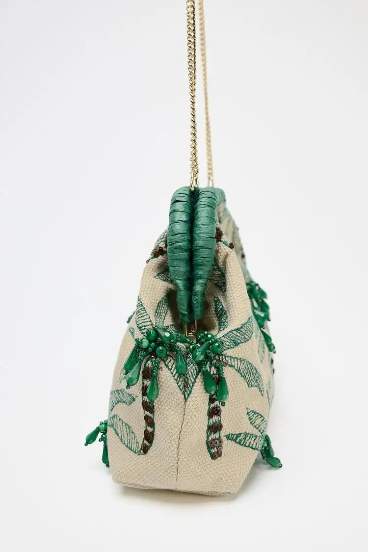 BEADED DETAIL CLUTCH, Envelope Clutchs Tree Embroidered, Luxury Designer Handbags with Removable Chain Crossbody Strap