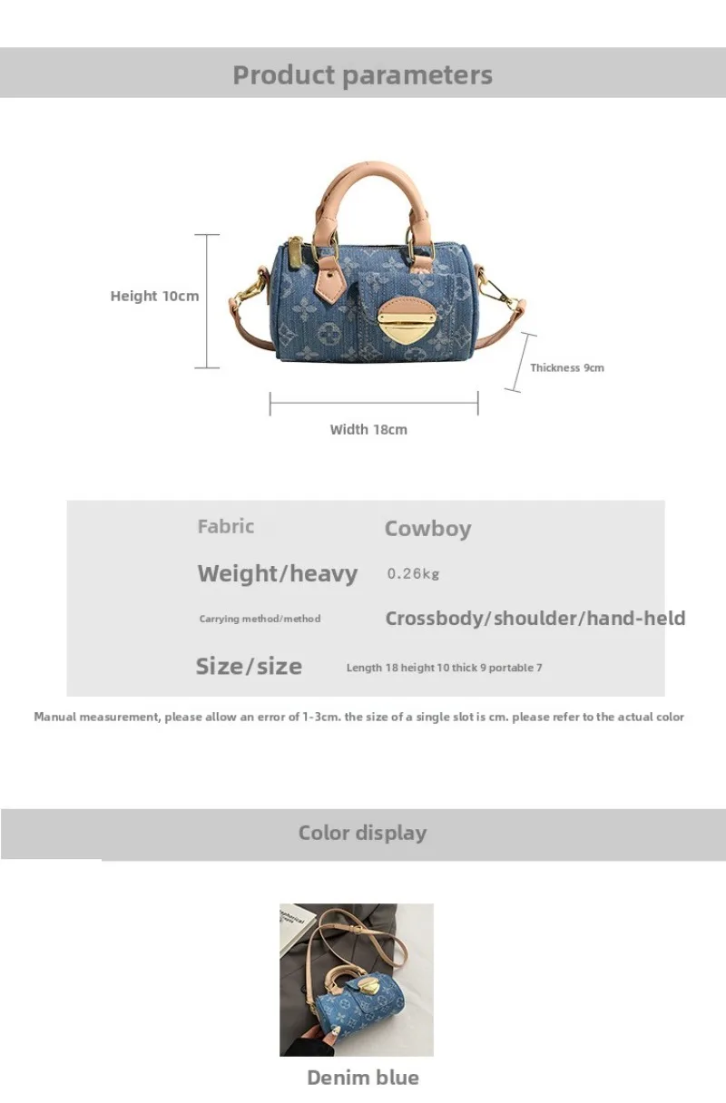Denim Bag Women's New Foreign Style Versatile Messenger Bag Fashionable Portable Cylinder Bag