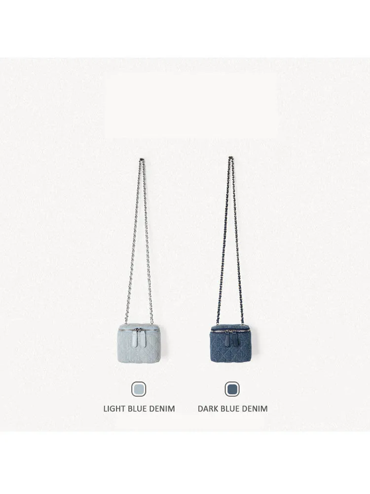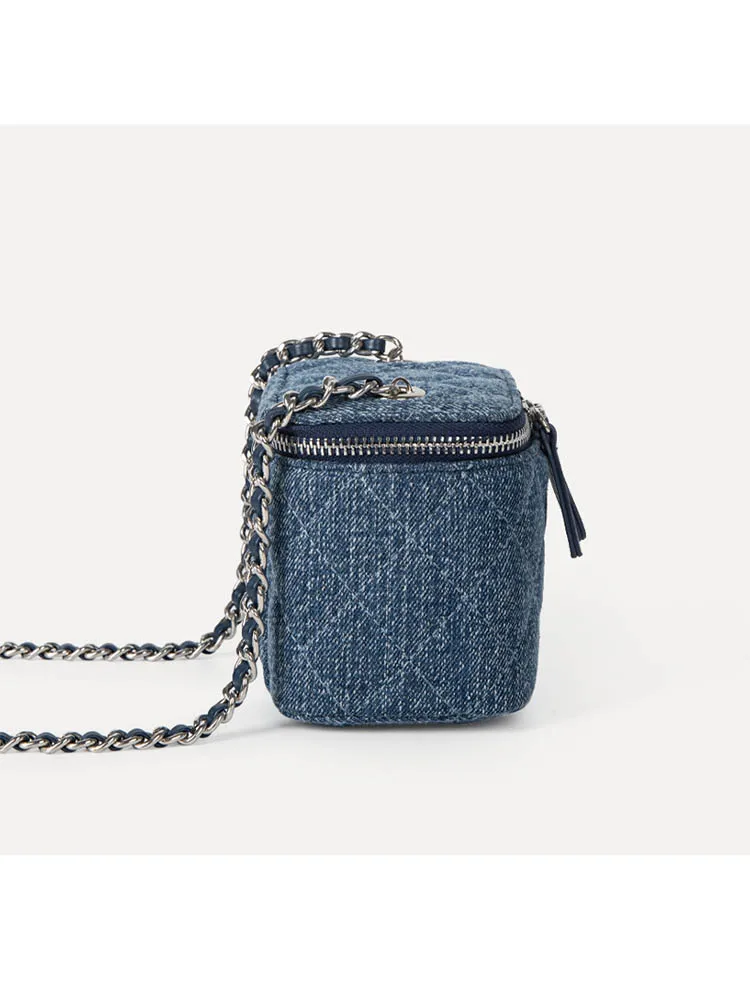Denim Female Retro Unisex Mini Diamond Jean Check Chain Small Square Crossbody Bags Handbags Letter Shoulder Shopper Purse
