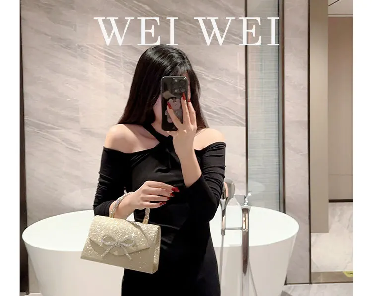 Evening Bag Dress Versatile European and American Clutch Bag Crossbody Celebrity Fashion Diamond Bow Chain Bag Lady Handbag