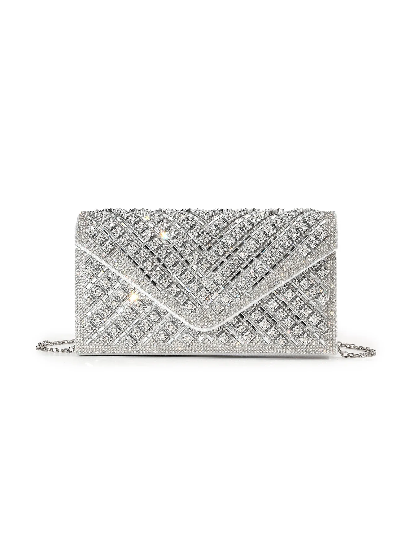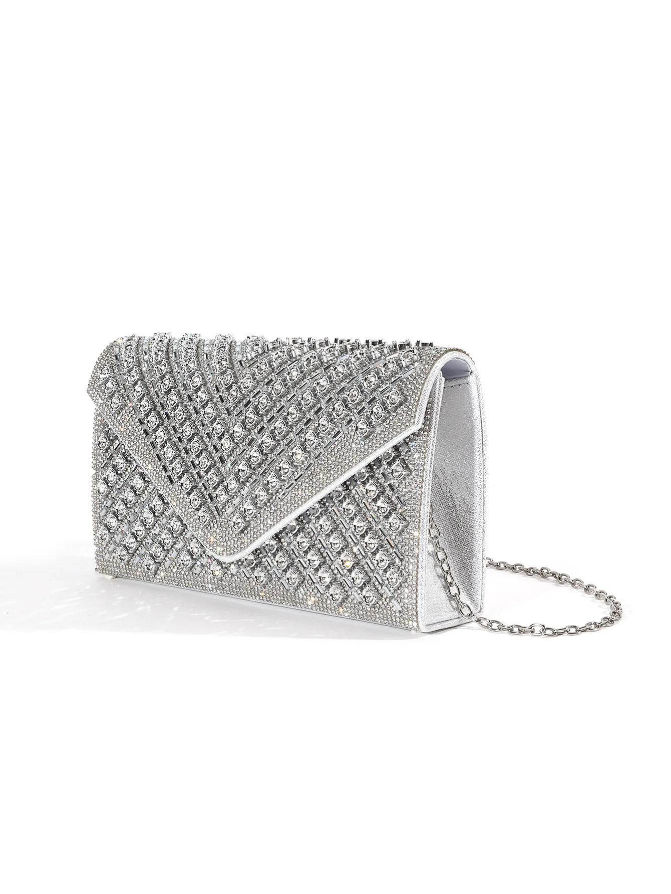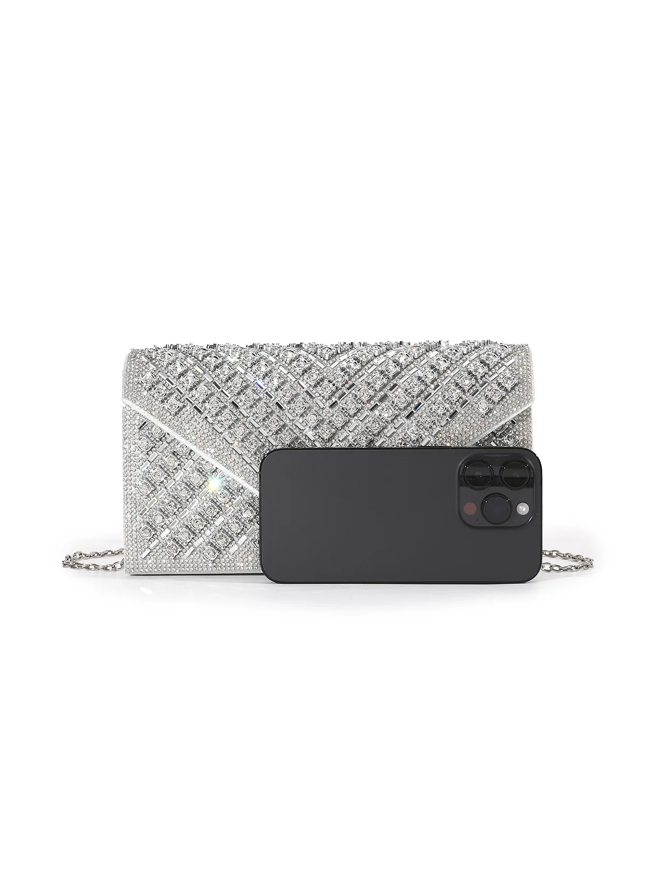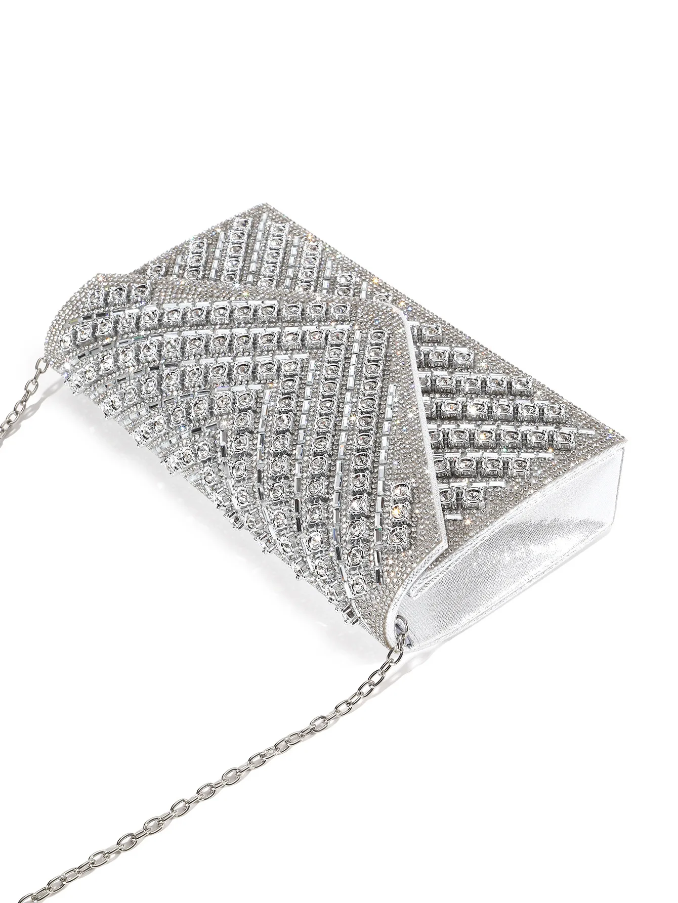 Luxury Shining Glass Drill Party Evening Bags: Silver Chain Shoulder Bags
