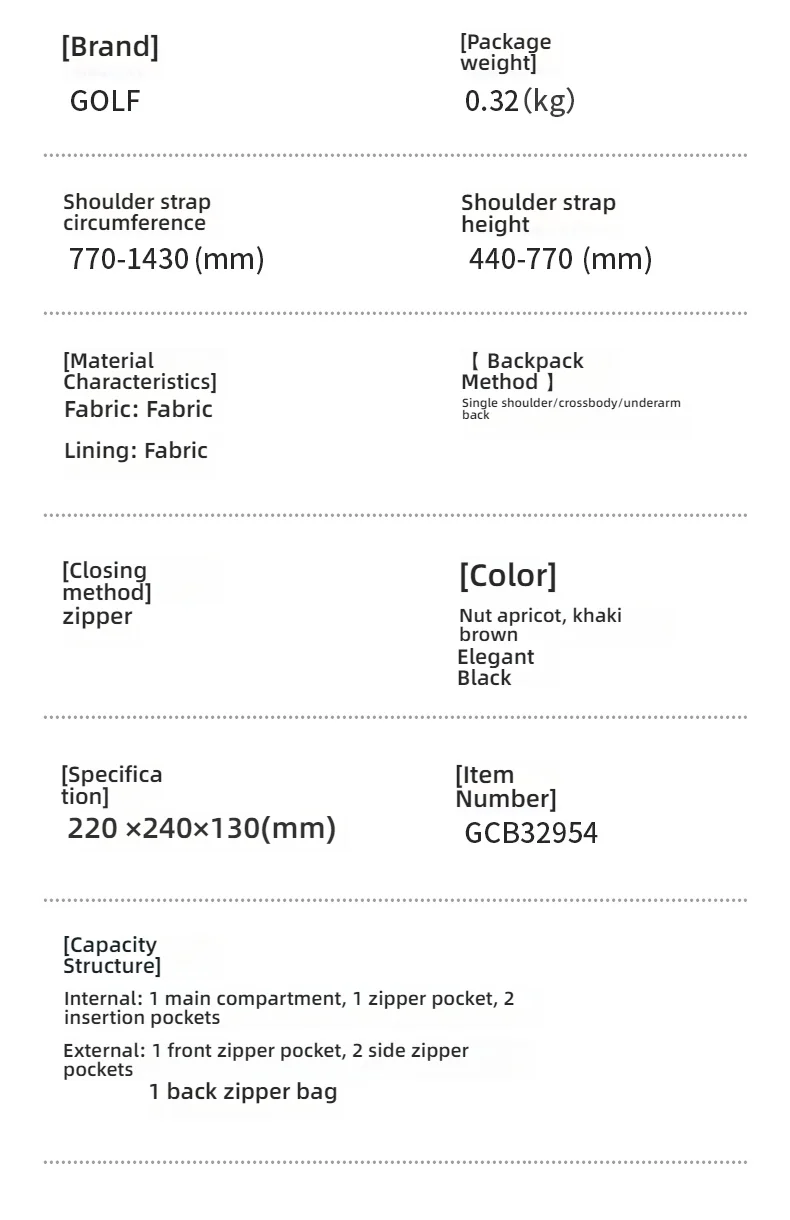 GOLF Quality Women's Waterproof Oxford Crossbody Bag Casual Multifunctional Shoulder Messenger Handbag Fashionable Sling Bag