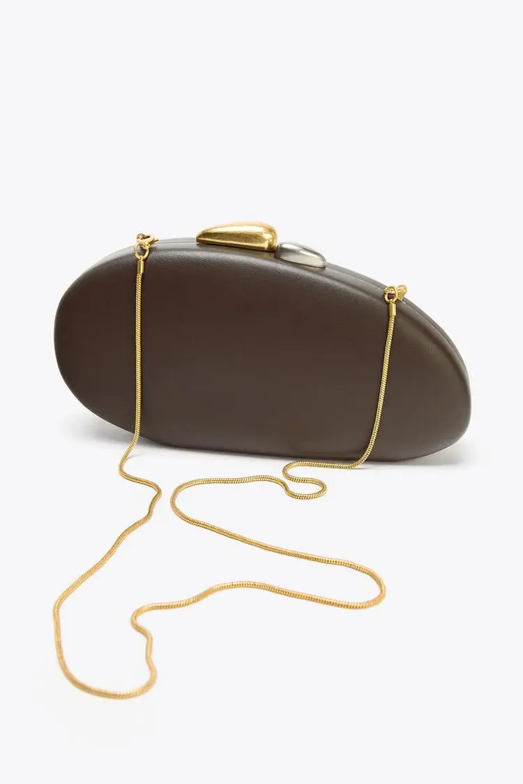 METALLIC CLOSURE CLUTCH, Luxury Design Evening Bag with Chains, Elegant Shoulder Purses for Ladies, Small Handbag Clip Bag