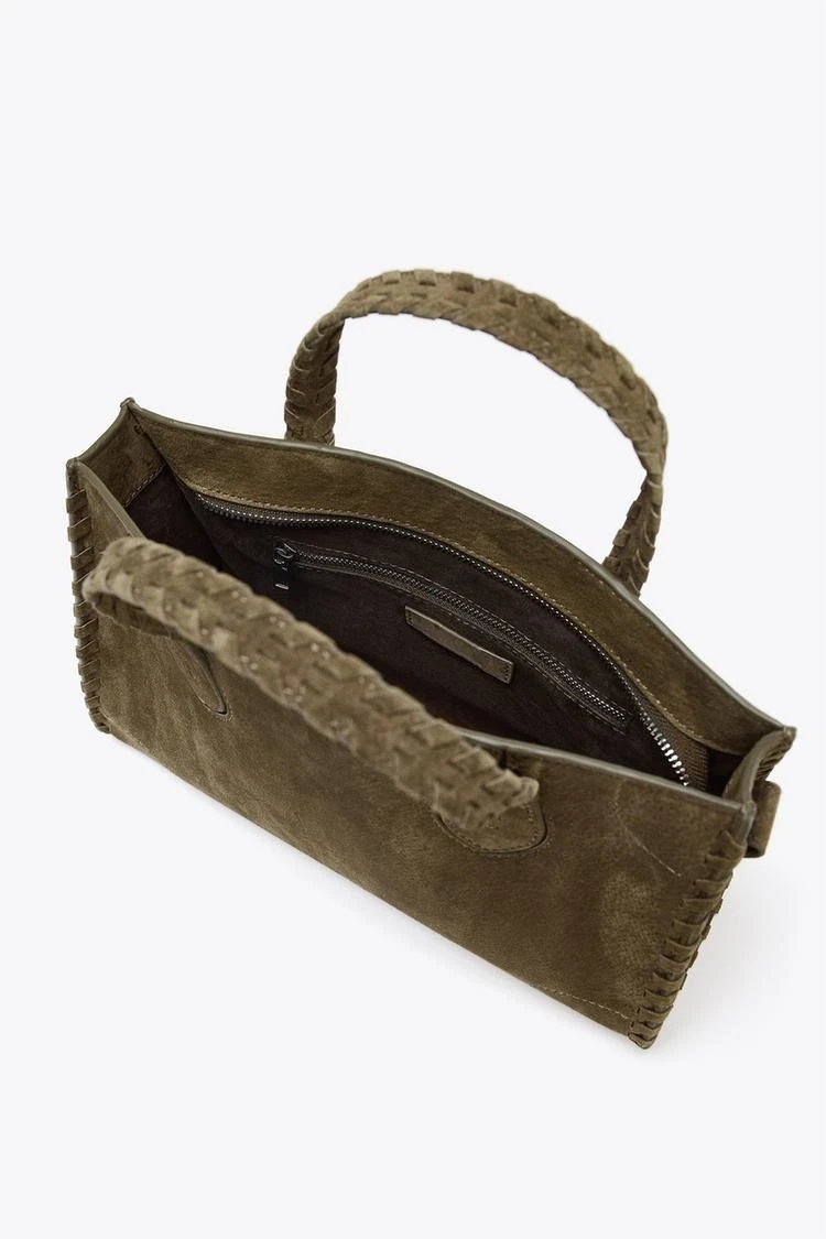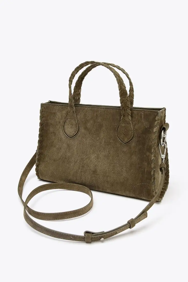 WOMEN'S SUEDE CITY BAG, Luxury Design Woven Effect Tote Handbags, Wide Handle with Removable Crossbody Strap
